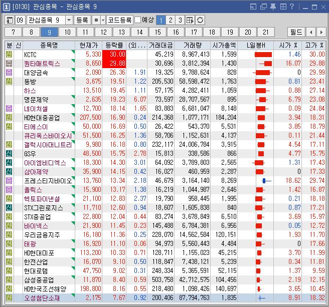 종목명 등락률 거래대금(백만) 이유