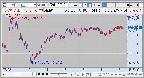선택받은 일부 종목만이 강하게 오르다가 내려가거나, 상한가까지 가기도 한다
