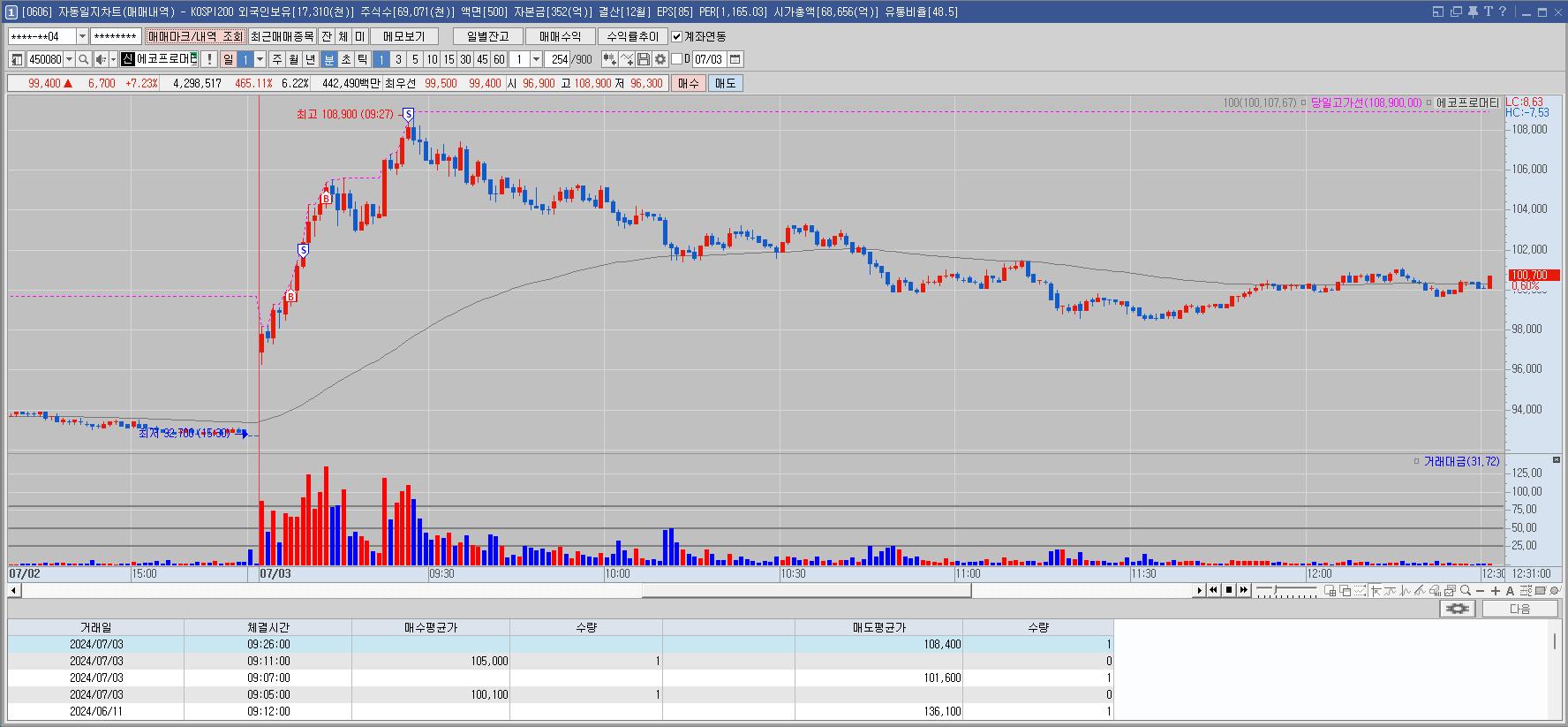 에코프로머티가 강하게 움직이는 걸 발견하고 매수