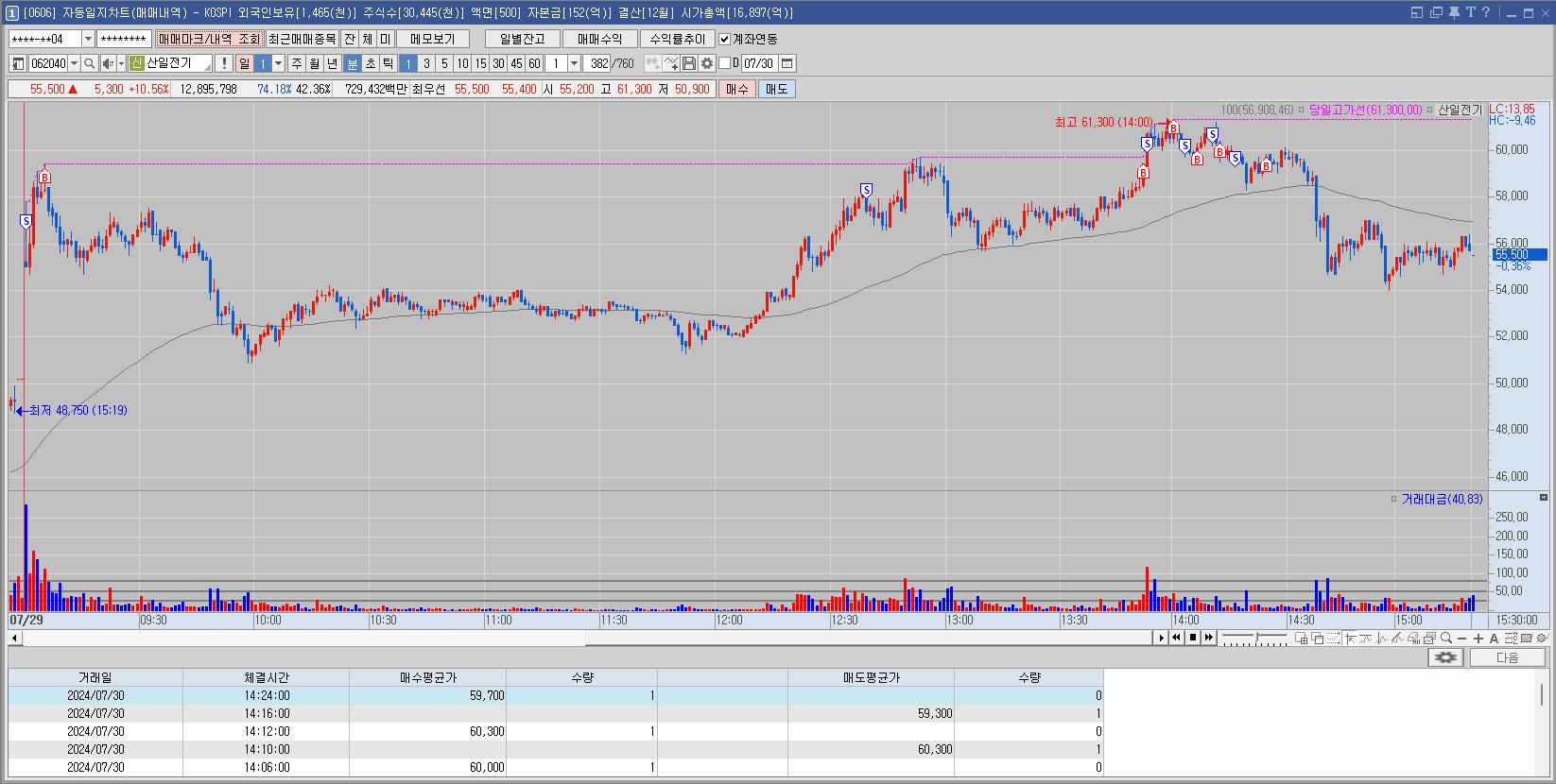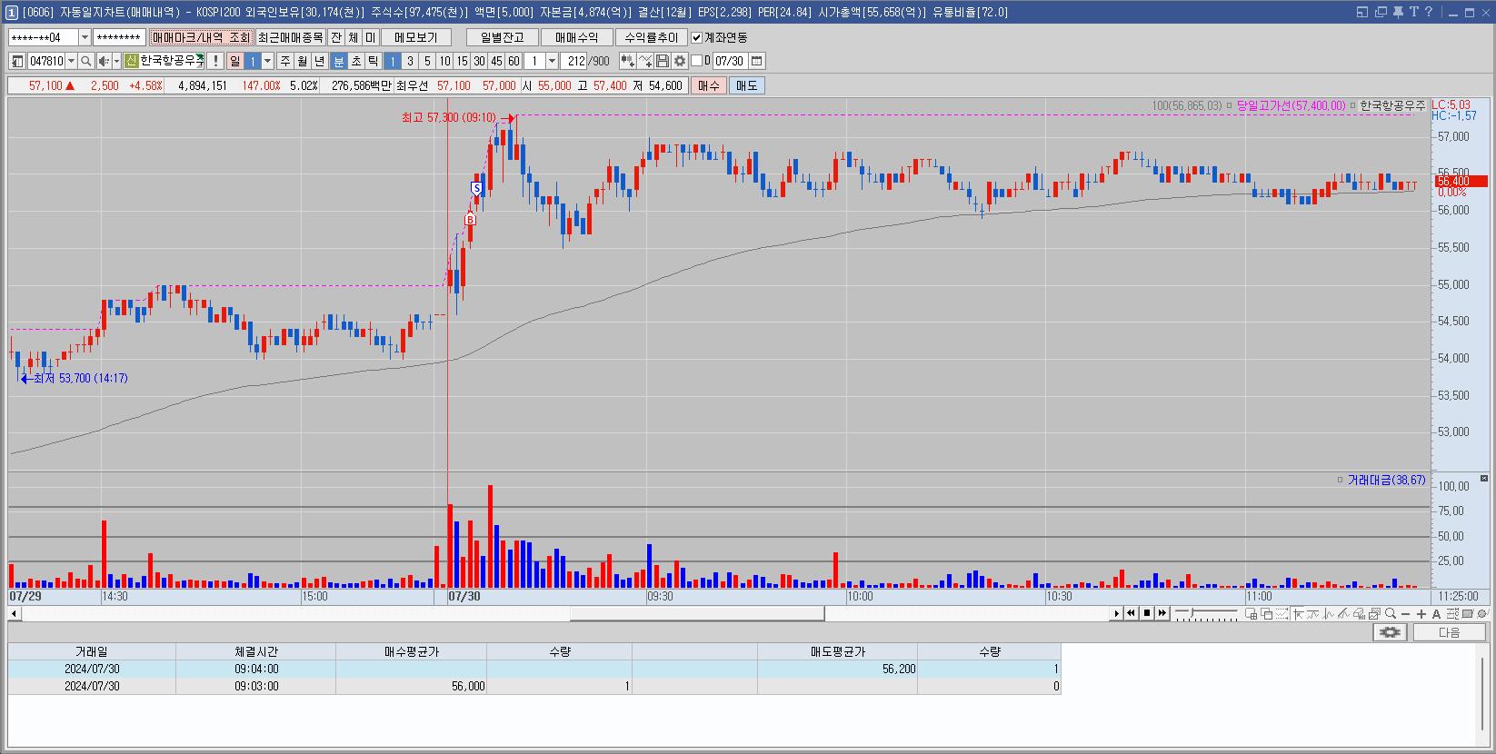 전일 롤러코스터를 타다가 종베를 해서 시초가 부근에 매도했는데 지금껏 매매한 것중 가장 큰 수익률이었다