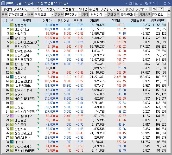산일전기 | 10.56 | 718,098 | 코스피 상장 둘째날 |