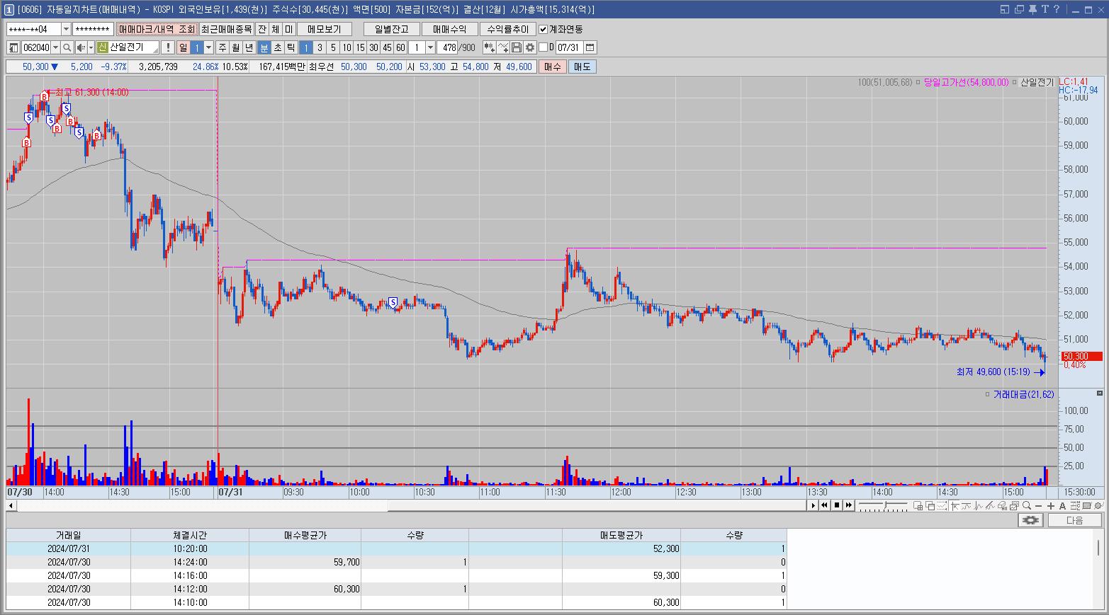 오늘은 손실이 계속 쌓였는데 오늘따라 매매하는 것 마다 사자마자 내려가고 팔자마자 올라갔다