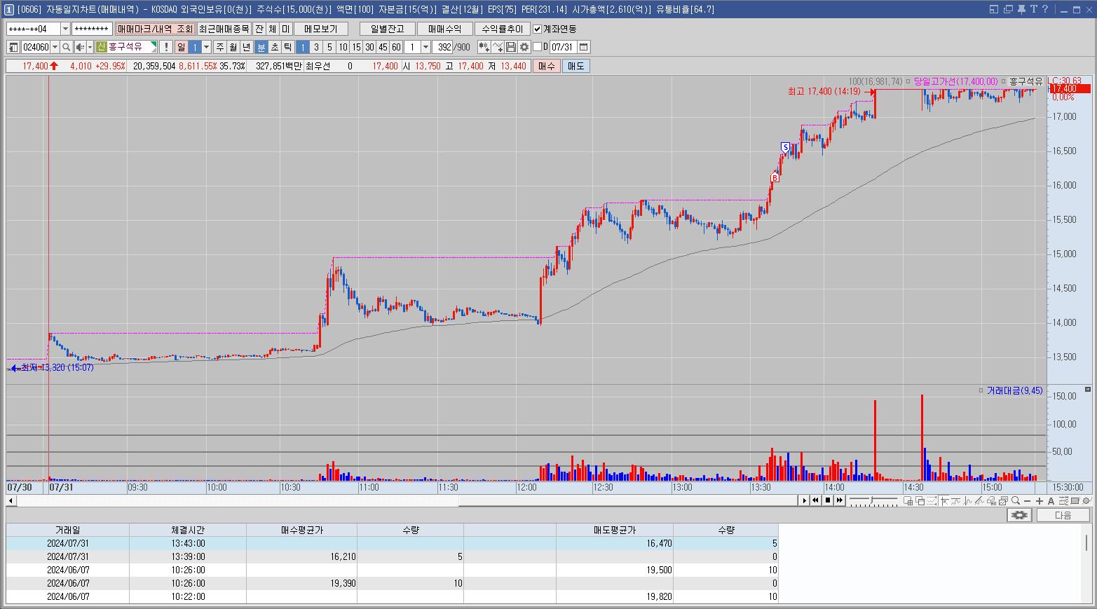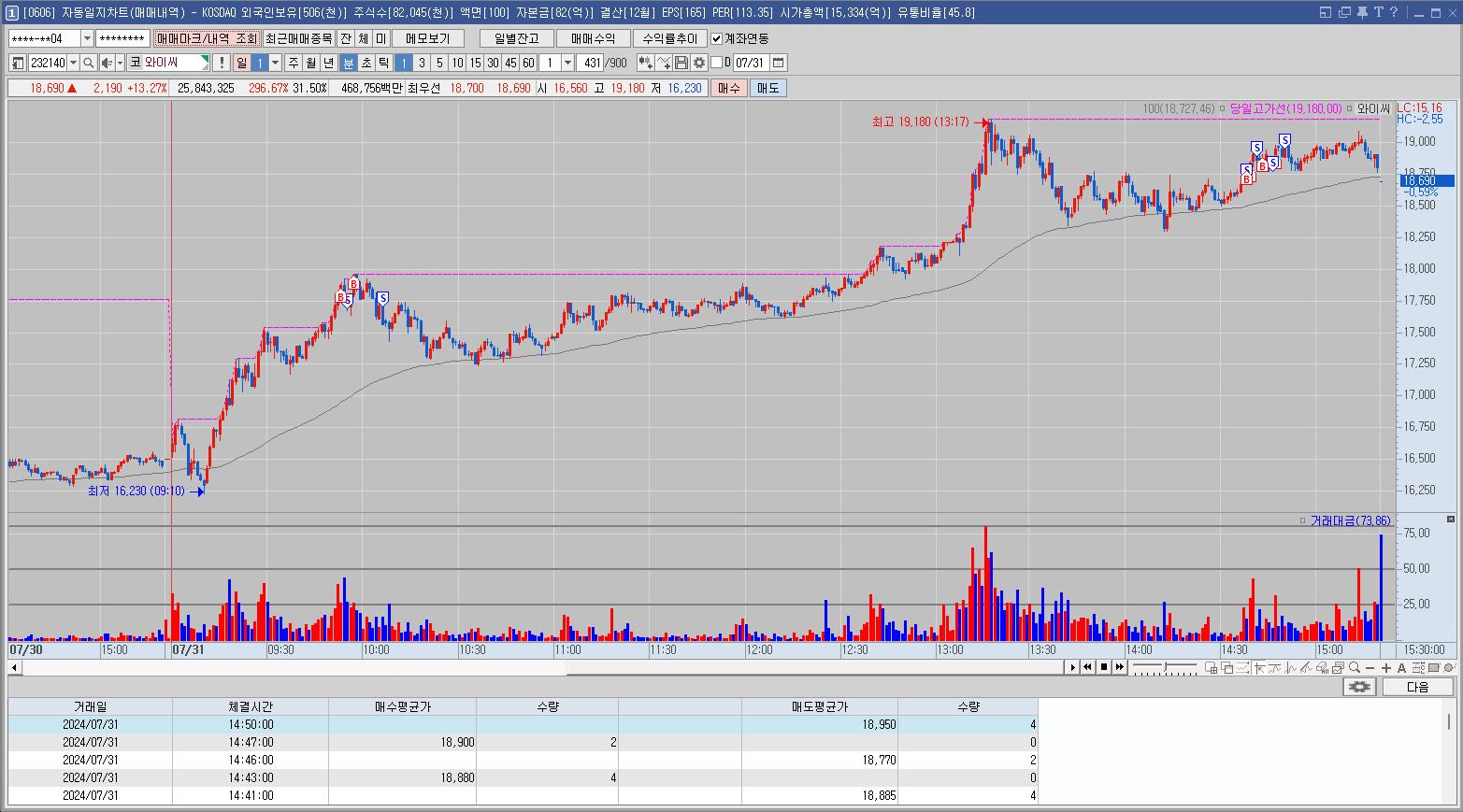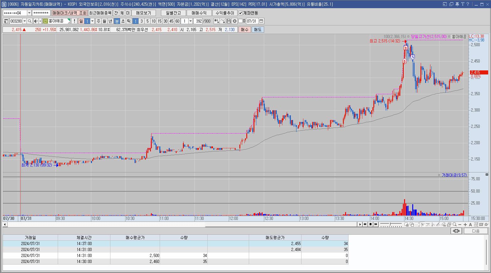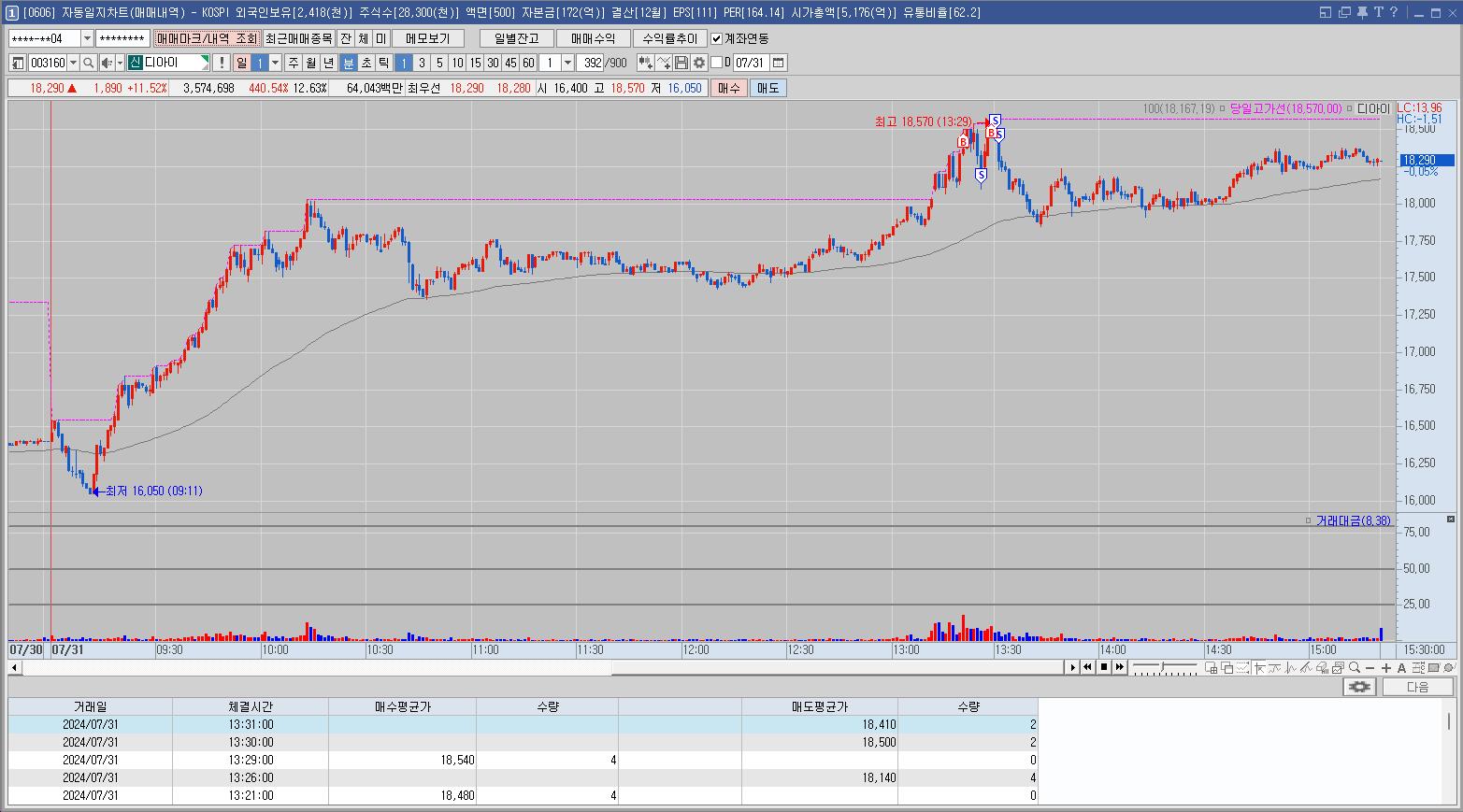 강하게 오르는 모습에 그제서야 아 이게 강한 재료구나 하고 매매를 했다