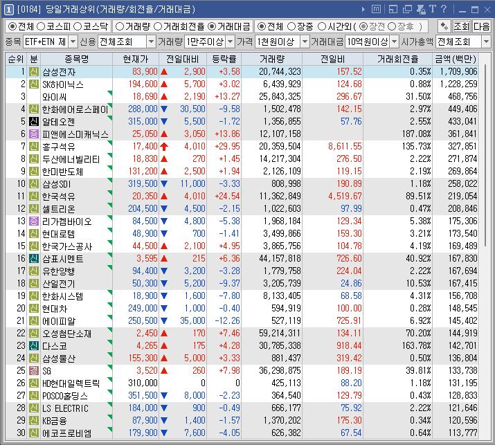 종목명 | 등락률 | 거래대금(백만) | 이유 |