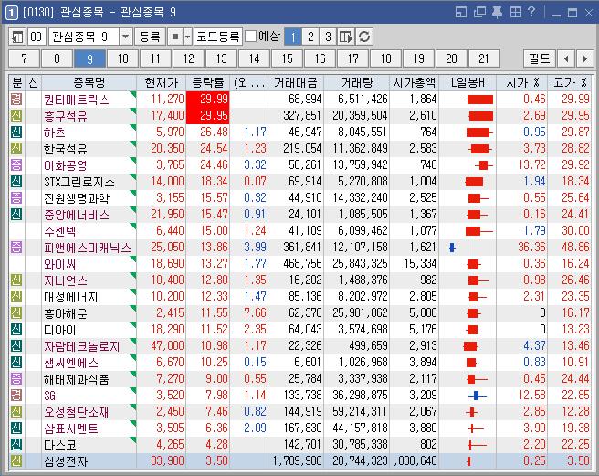 한국ANKOR유전 | 12.75 | 40,620 | 하마스 최고 지도자 피살 소식에 유가 상승 기대감 속 석유 테마 강세 |