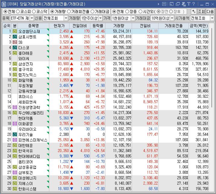 STX그린로지스 | 18.34 | 67,701 | 하마스 최고 지도자 피살 소식에 중동 지정학적 리스크 증가 속 물류 테마 강세 |