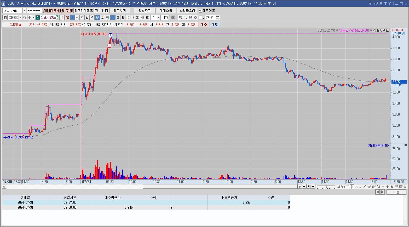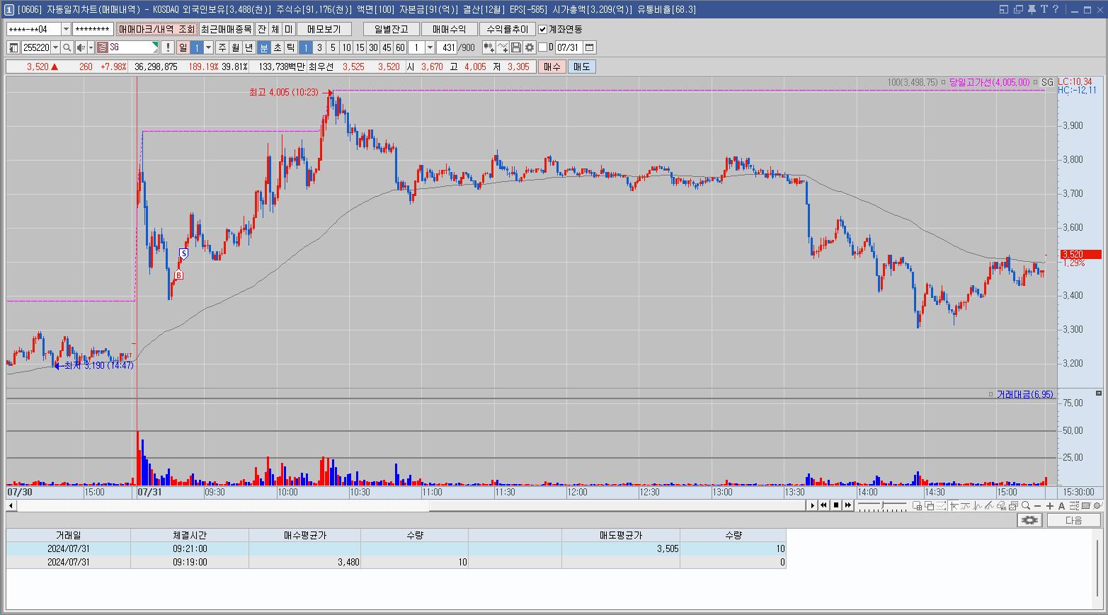 상한가까지 갈만한 힘이라 생각은 했지만 이미 많이 위축된 상태였던지라 변동을 못버티고 짧게 수익을 챙겼다