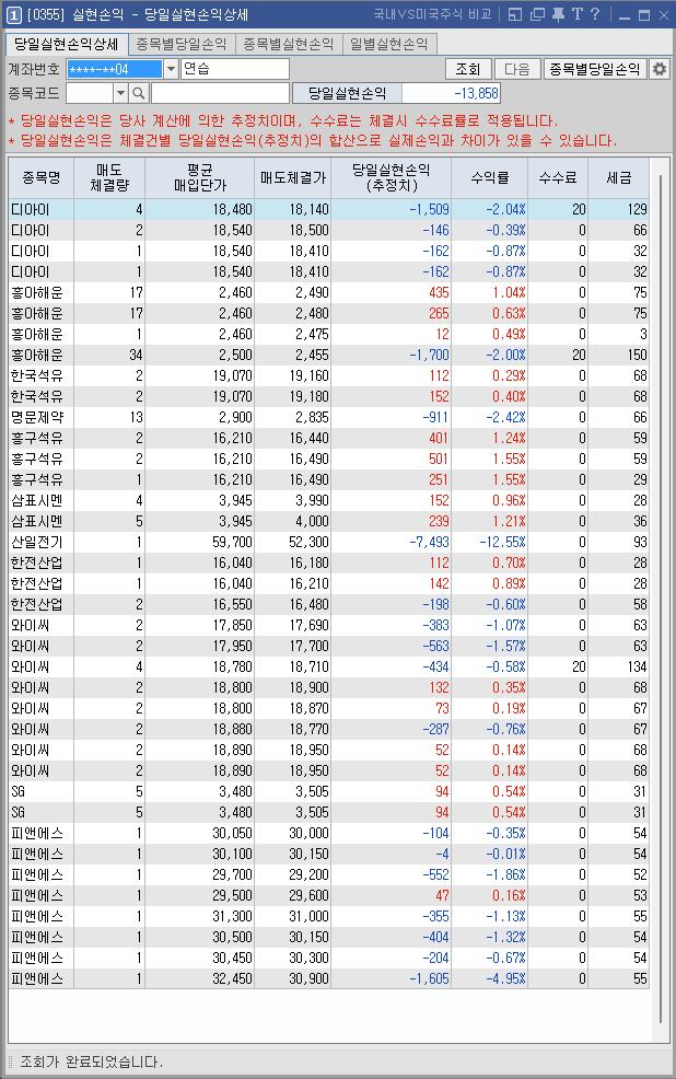 놓쳤으면 보내주고 말아야 했는데 미련이 남았었는지 장 막판에 매매하다가 손실