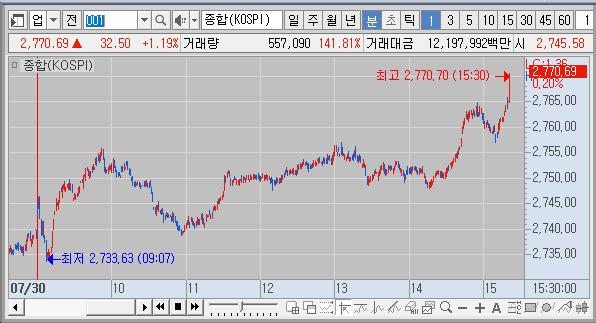 코스피 지수와 비슷한 흐름으로 따라가고 있었다
