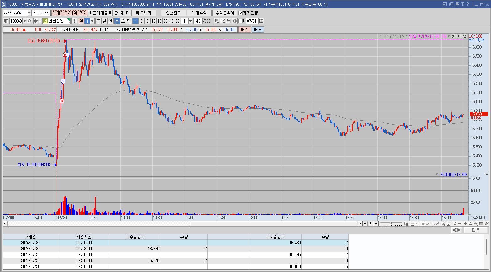 반도체 관련주들이 상승하고 있었고 이 종목도 전고점을 돌파후 다지면서 상승하는 모습에 매매를 했는데