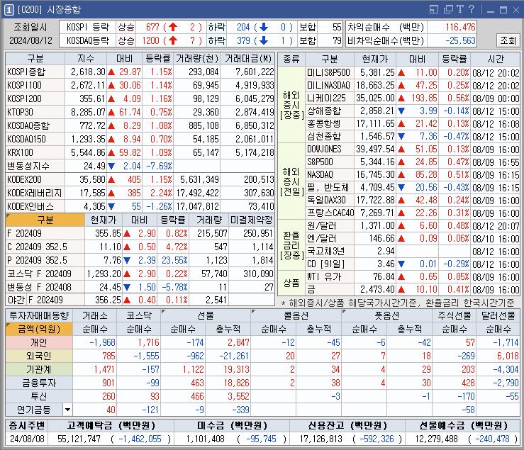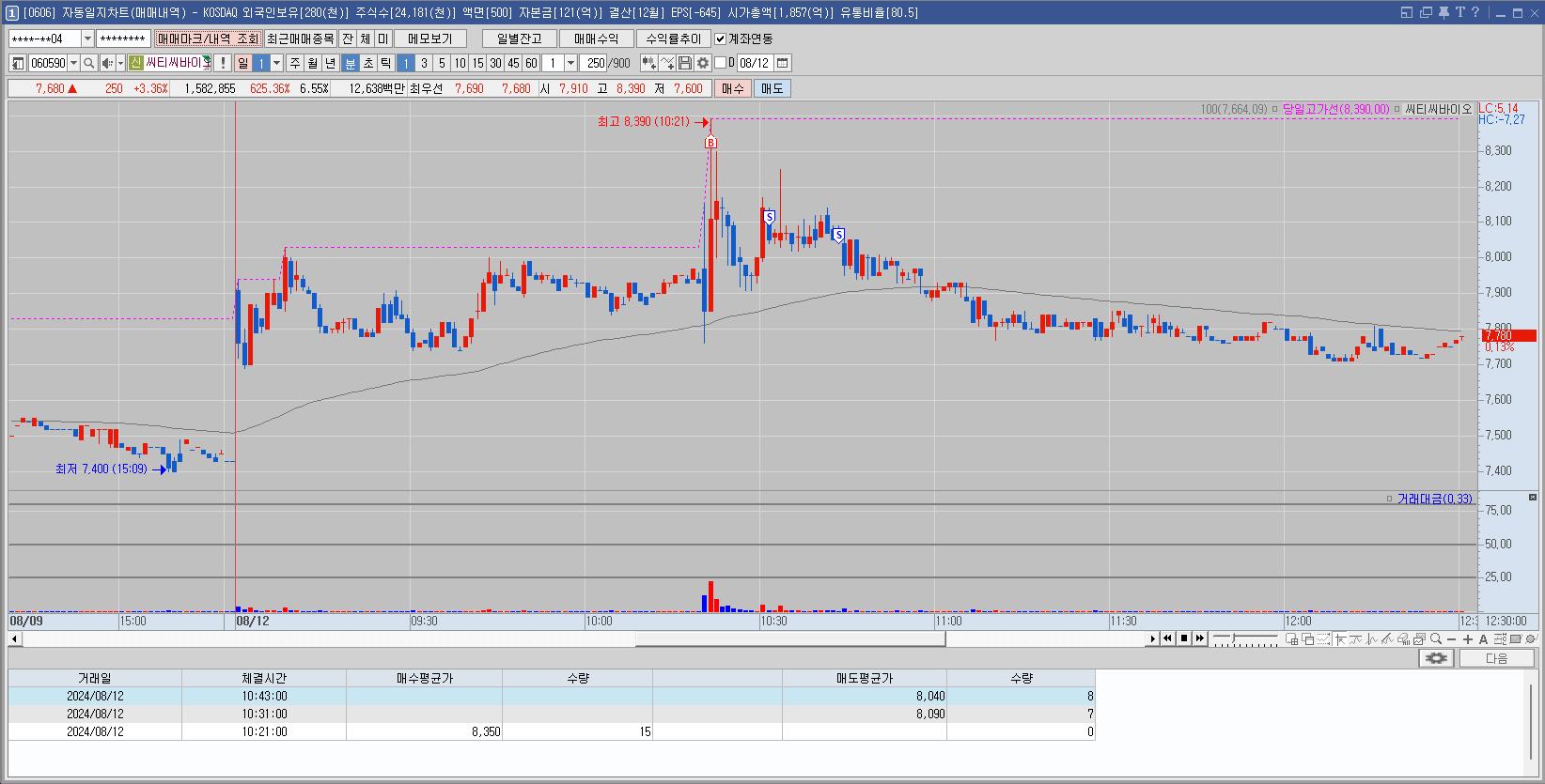 2024년 8월 12일(월) 특징주 및 시간외 / 매매일지