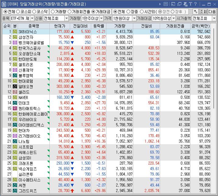한국가스공사 11.59 380,362 하반기 실적 기대감에 강세