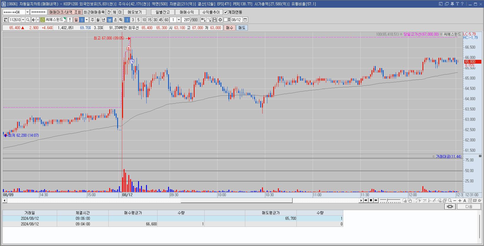 VI 후 갭상승에 매수. 변동성이 매우 커서 상승에 바로 매도