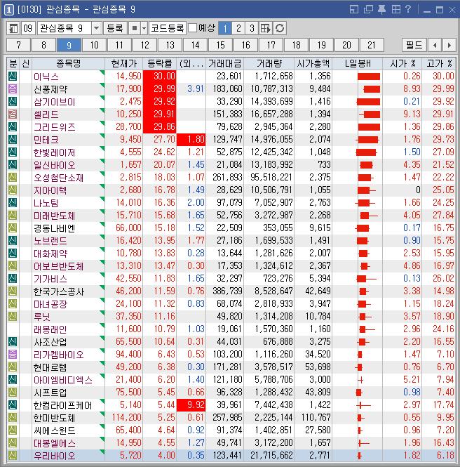 셀리드 29.91 151,213 코로나 재유행에 코로나 테마 강세