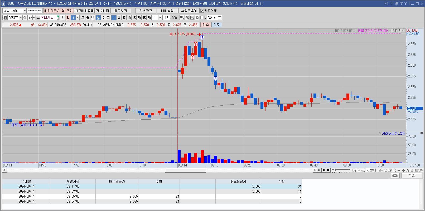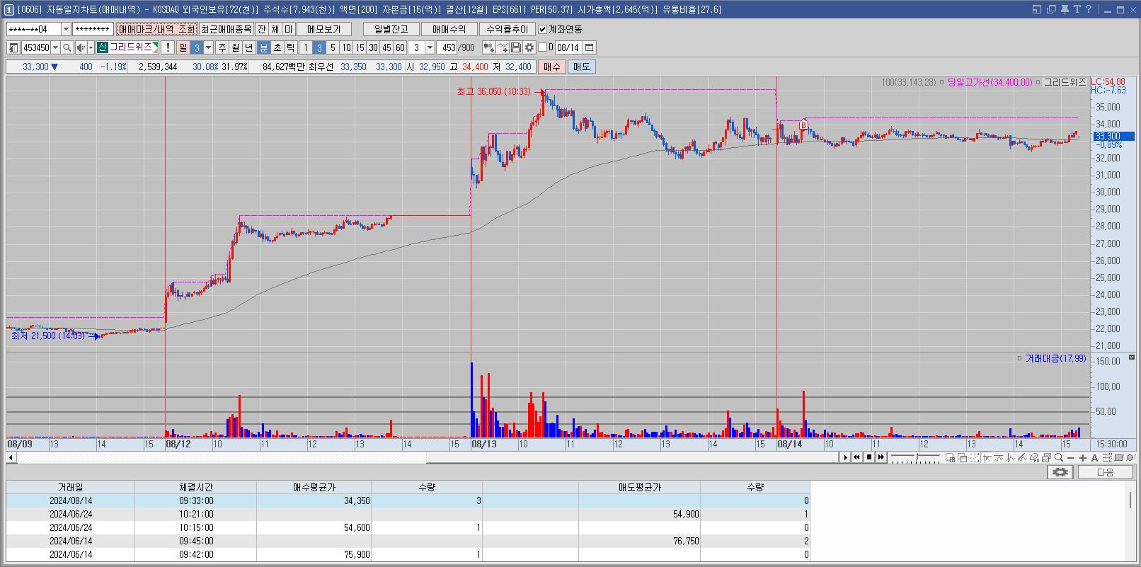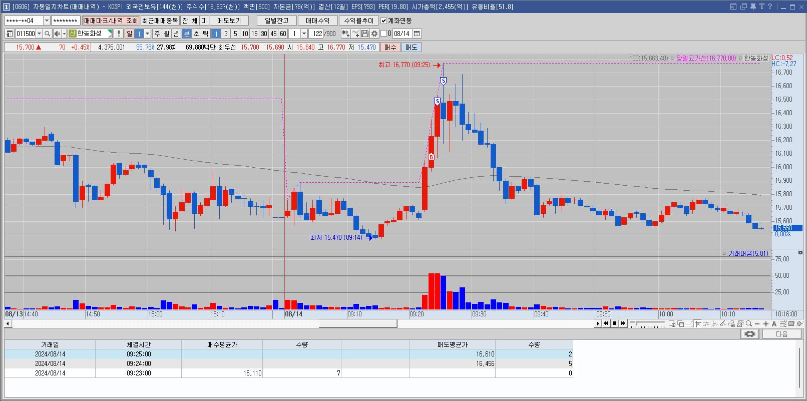 1차 매매 후 더 오를 것 같아서 재매수 했는데 약한 모습에 손절