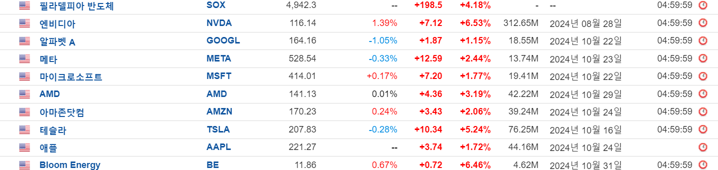 미래반도체 | 12.82 | 64,682 | 엔비디아 6.53% 급등, 필라델피아 반도체지수 4.18% 급등 소식 속 반도체 테마 강세 |