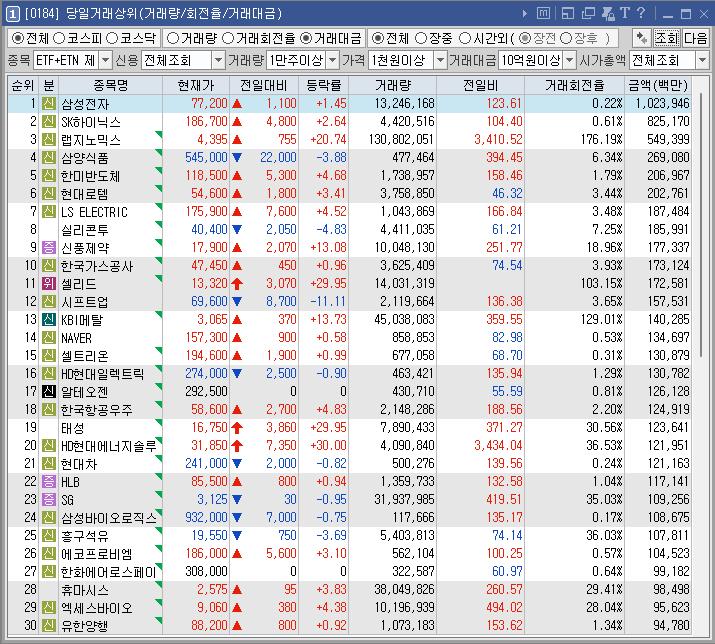거래대금이 적고 여러종목이 상승하는 상승장