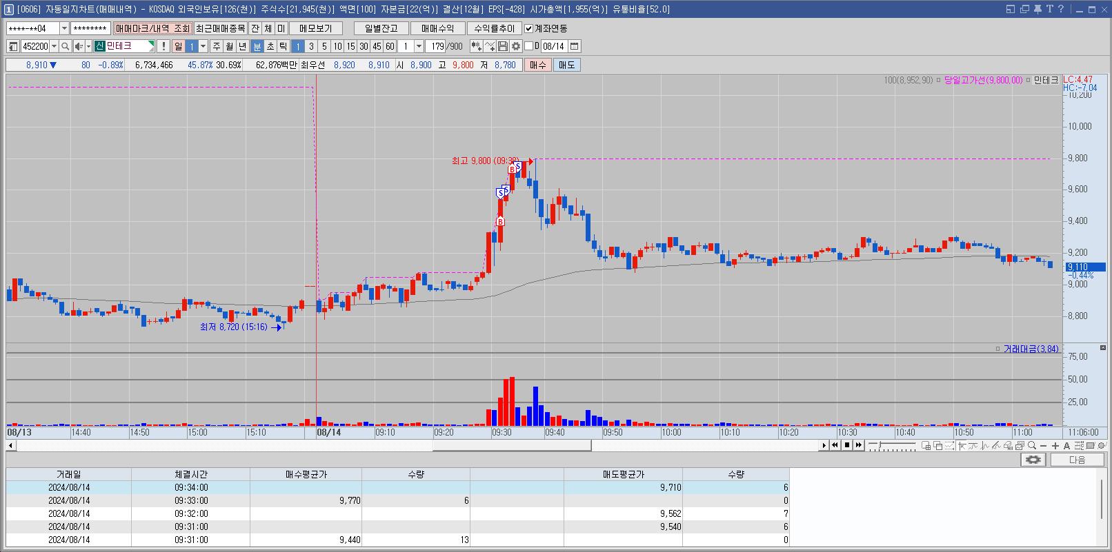 전기차 과충전 방지 대책으로 관련주 부각. 2일 연속 많이 올라서 매매를 안하려고 했지만