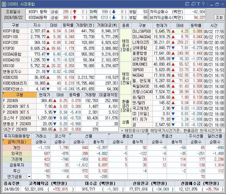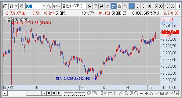 * 밤새 미장이 Fed 9월 금리 인하 기대감 등에 상승해서 국장도 상승 출발했지만 변동성을 보이며 하락했다가