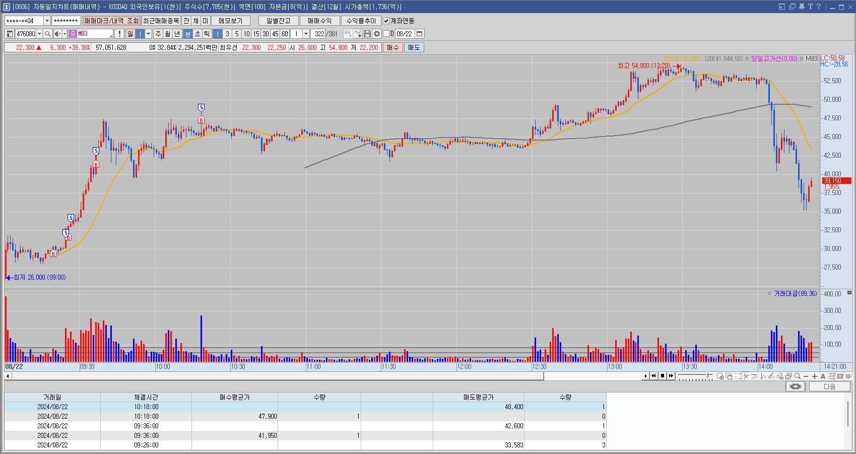 신규주는 언제나 투매가 나올 수 있어서 짧게 매매했다