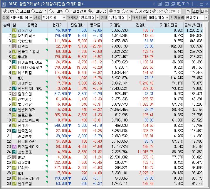 지아이텍 | 11.30 | 34,556 | 당정, 전기차 화재방지책 확정 소식 속 전고체 배터리 건식 공정기술 및 배터리 3사 고객사 부각 테슬라 급등에 투심 개선 2차전지 테마 상승 |