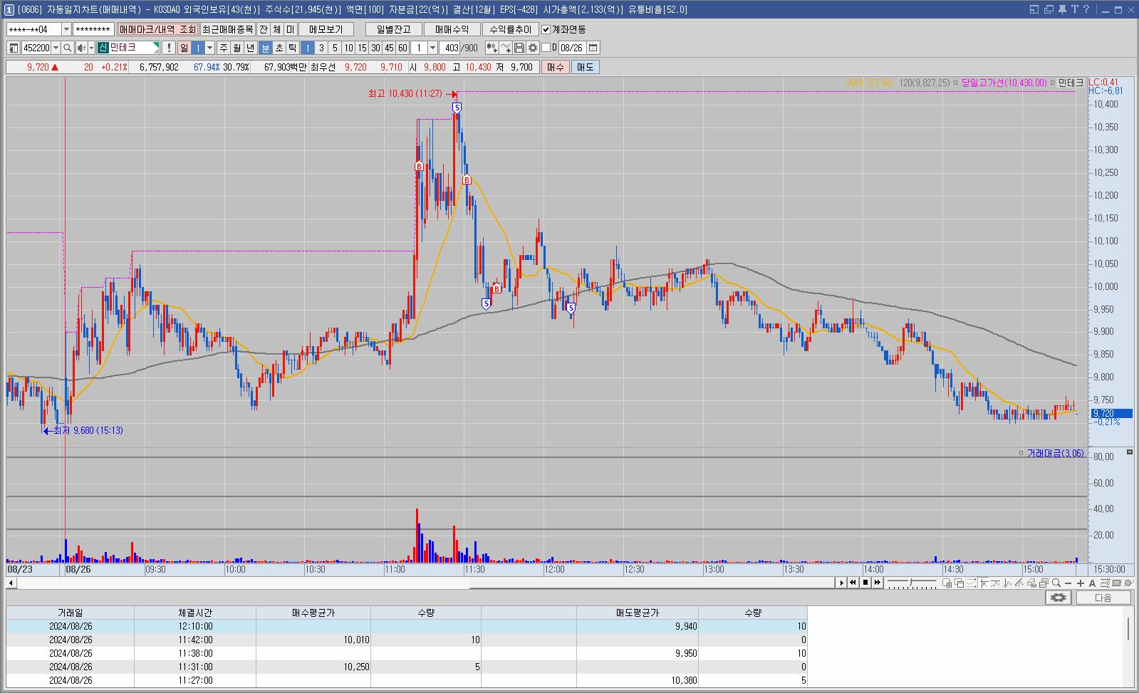 민테크는 오늘 특별한 이슈도 없었고 거래대금도 없었는데 자리가 좋다는 이유 + 갑작스런 매수세로