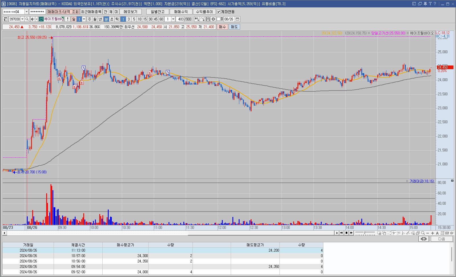 일봉의 모양이 매우 좋아보여서 매수세만 붙으면 높아도 사야겠다 생각하고 있었는데