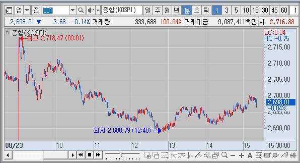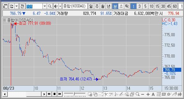 시장 거래대금이 마른 상태의 눈치싸움에 급등락이 매우 심한 하루였다