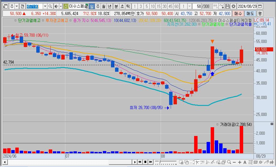 이수스페셜티케미컬 | 14.38 | 275,176 | 삼성SDI 전고체 배터리 'B샘플' 개발 완료 소식 속 전고체/2차전지 테마 상승 |