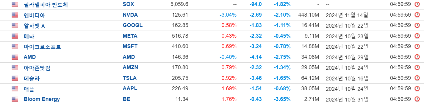 * 나스닥 차익실현 물량 출회 등 양대 지수 모두 조정. 엔비디아 실적 발표에 시간외 하락