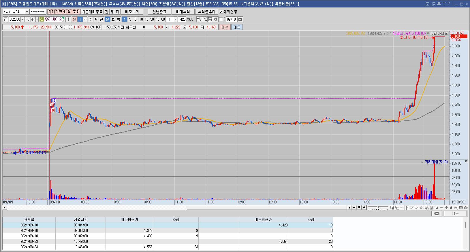 뉴스가 뜨며 부각 되는 모습과 일봉상 자리도 좋아보여서 매수세만 들어오면 상승하겠다 해서 매수했는데