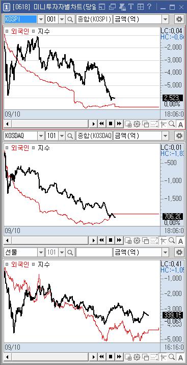 외국인은 계속 매도 포지션, 기관은 선물매도 포지션