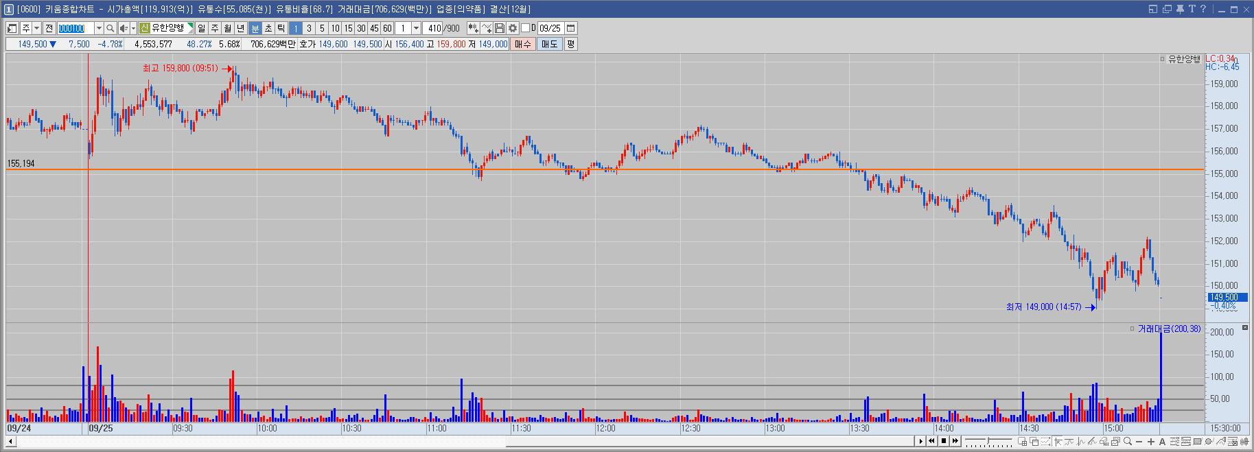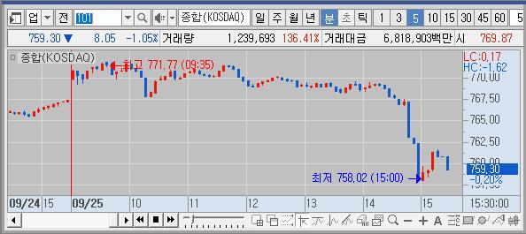 이에 국장은 상승출발했으나 장 후반 급락이 나옴