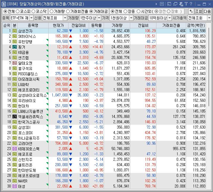 화천기계 -1.54 657 투자주의]단일계좌 거래량 상위종목