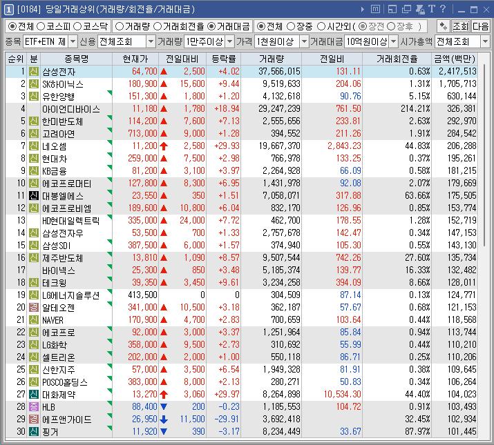 종목명 | 등락률 | 거래대금(백만) | 이유 |