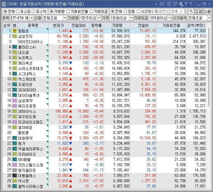 퀀텀온 | 13.86 | 76,146 | 양자배터리 신사업 기대감 지속 |