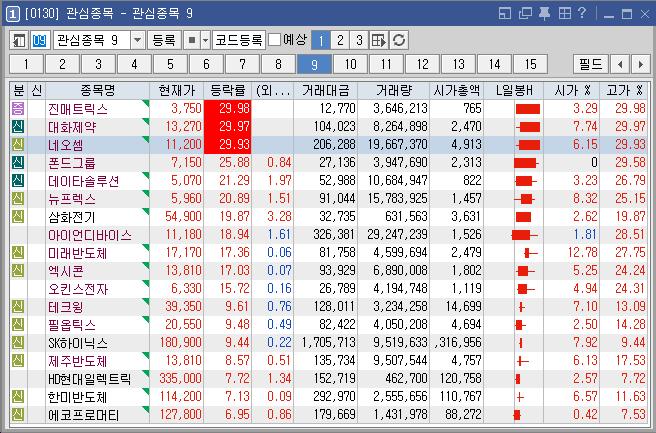 반도체 | 피엠티 네오셈 아이언디바이스 미래반도체 엑시콘 오킨스전자 퀄리타스반도체 피엥스케이홀딩스 샘씨엔에스 아이엠티 에스티아이 테크윙 SK하이닉스 |