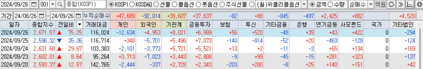 2024년 9월 27일(금) 종잡을 수 없는 변화무쌍한 시장 (0) | 2024.09.27 |