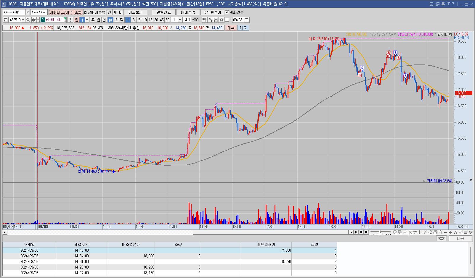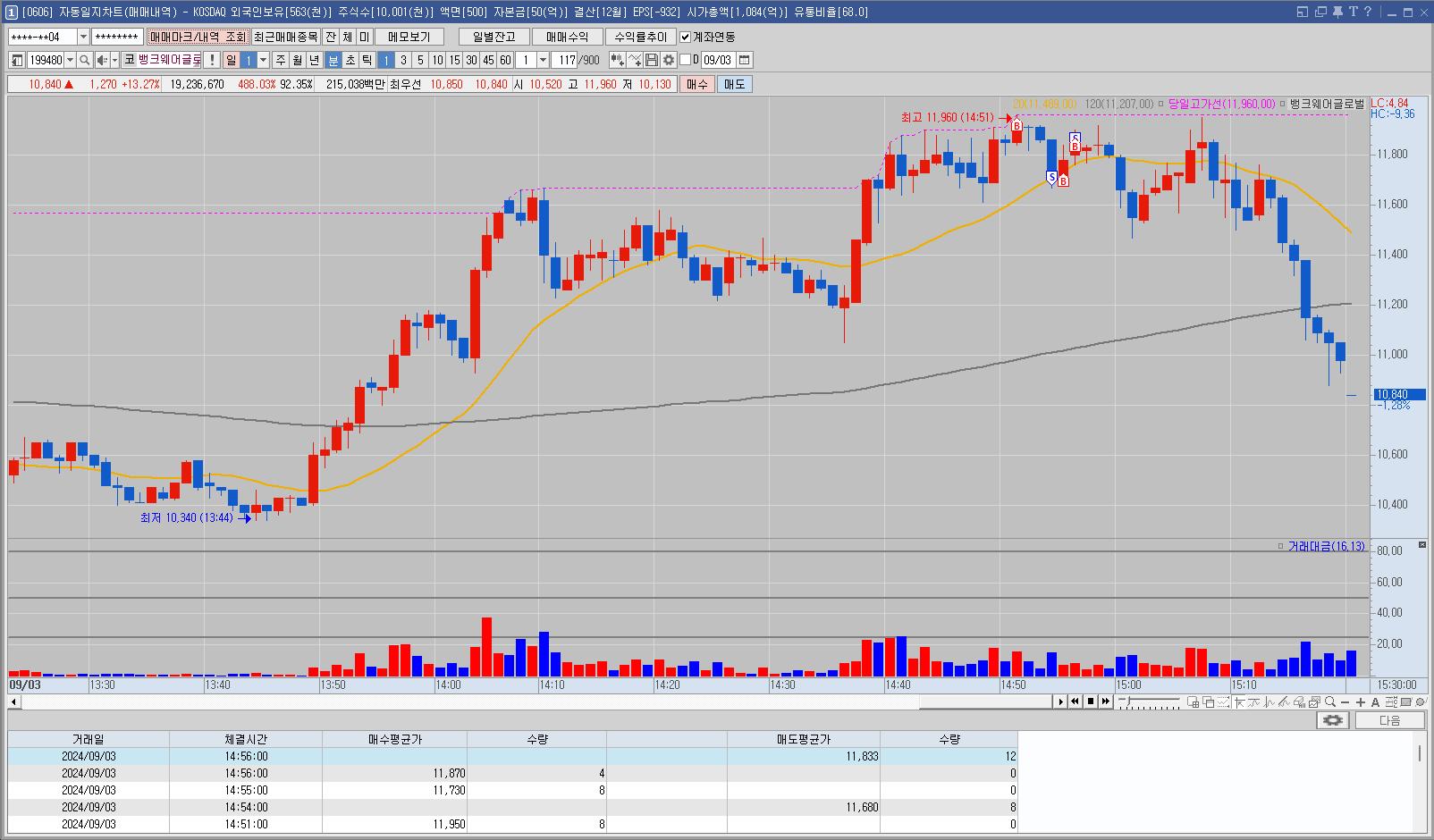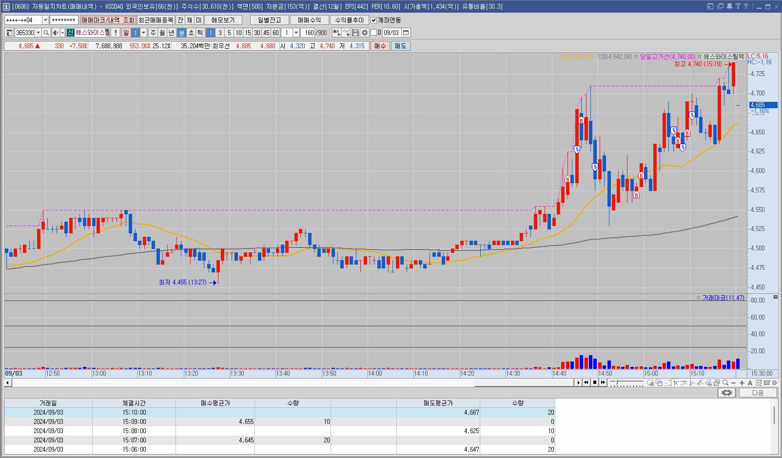 별다른 이슈가 없는 종목인데 갑자기 매수세가 들어오고 관심을 보이는 모습에 오르내릴때 사고팔고 해보았다