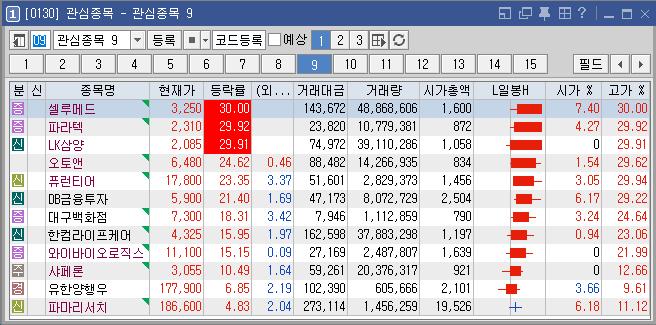 샤페론 | 10.49 | 58,323 | “아토피 치료제, 美 FDA 임상2상 안전성 확인” 소식 지속 |