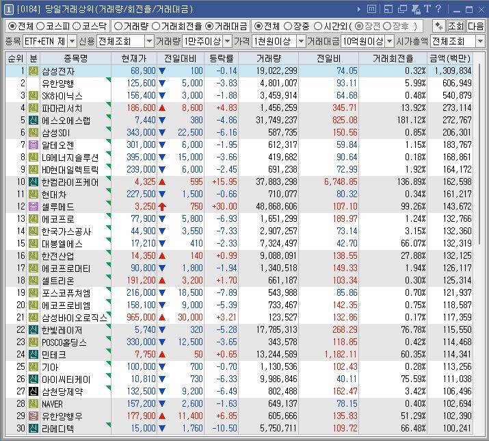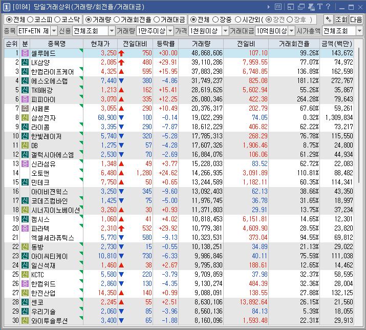 한미약품 | 8.79 | 50,223 | 비만약 후보물질 연구 결과 11월 공개 기대감 경영권 분쟁 이슈 |