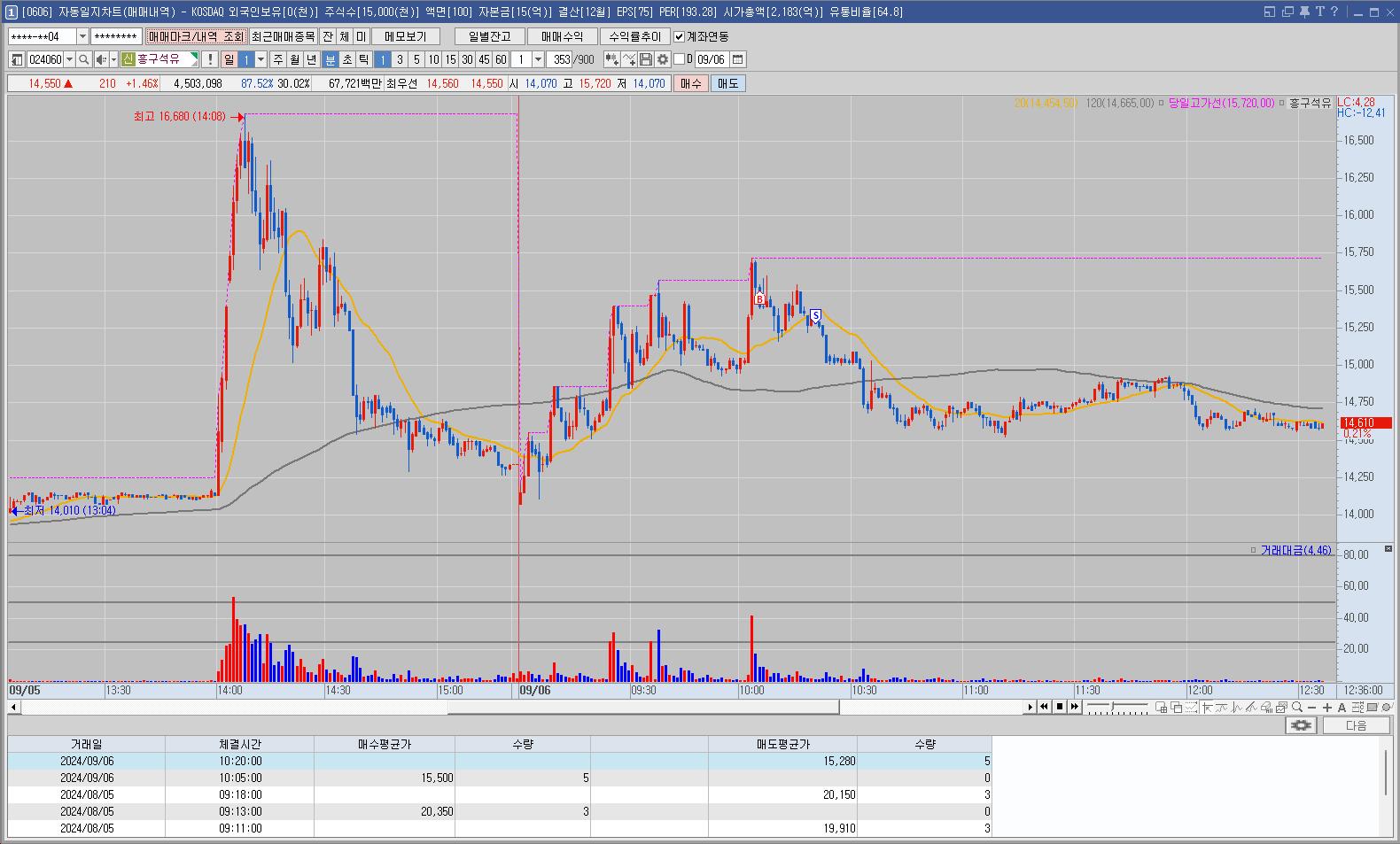 중동 관련 뉴스가 뜨면서 상승 흐름중 슈팅이 나오는 모습에 눌림이라 생각한 지점에 들어갔으나 약하고