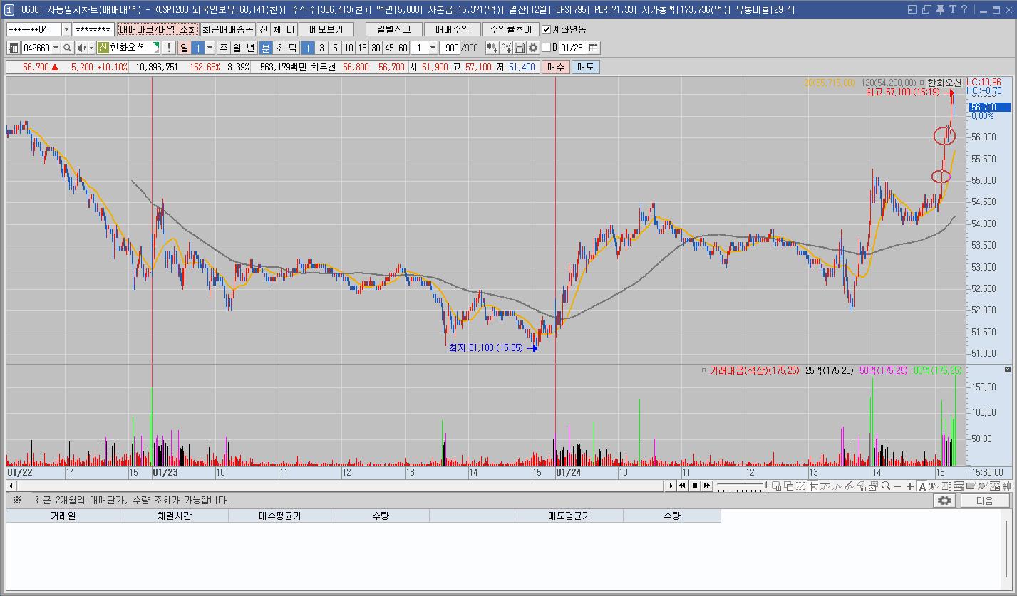 하락을 돌리며 상승하는 흐름, 4년만에 흑자전환 등 호재 뉴스를 계속 반복해서 띄우며 일정시간 강한 매수세와 급락을 반복하는 움직임, 장 마지막까지 강한 모습에 매매