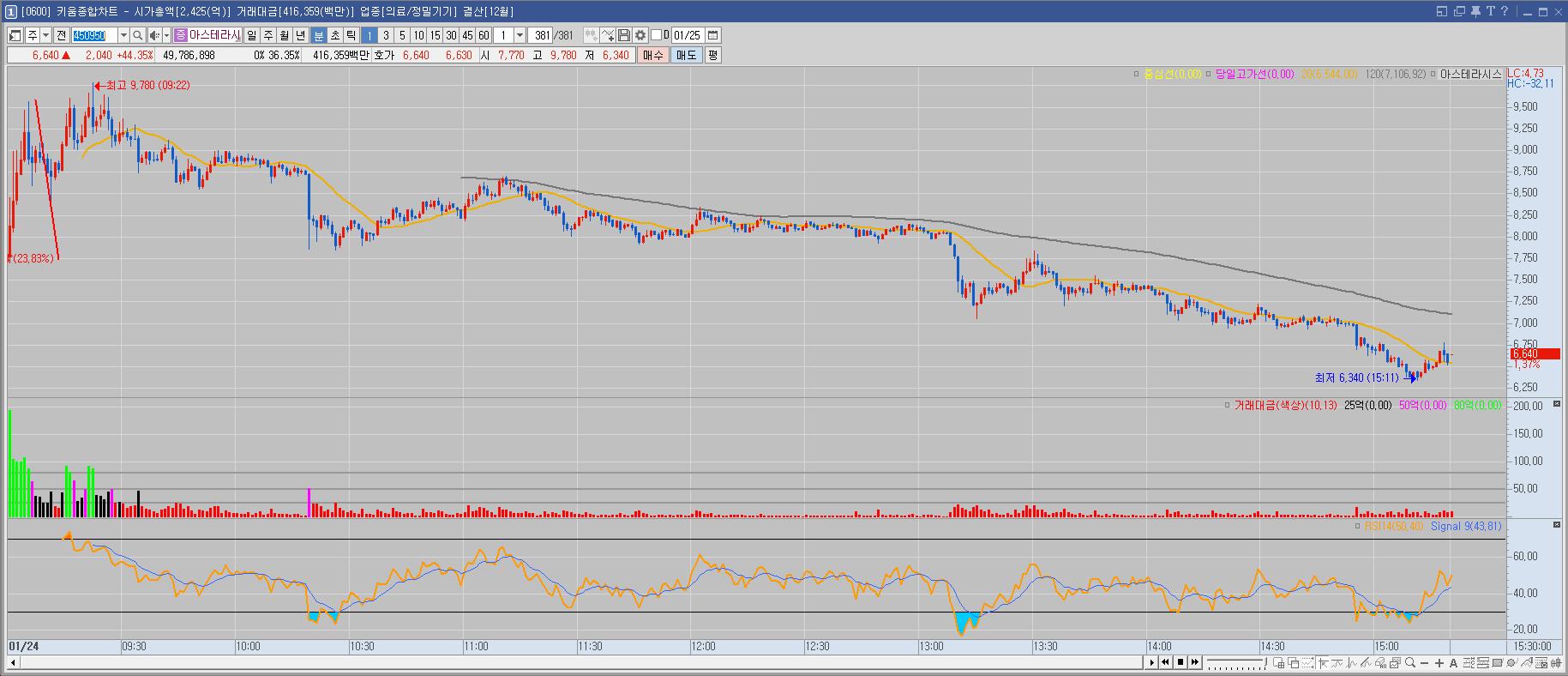 아스테라시스 44.35 416,359 코스닥 상장 첫날 강세