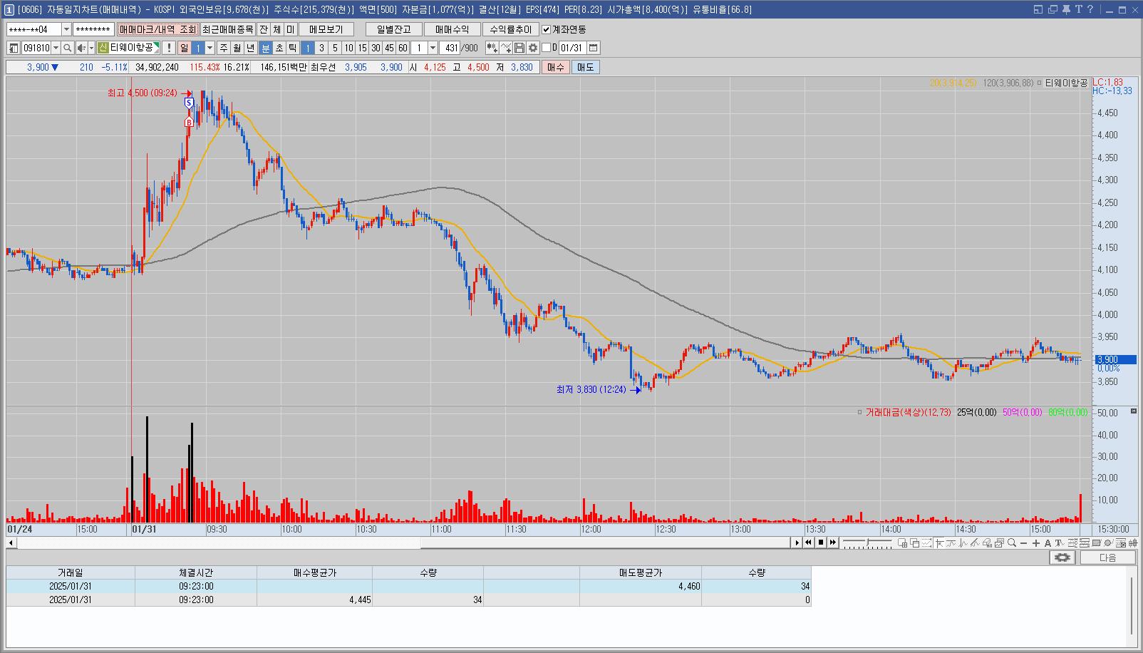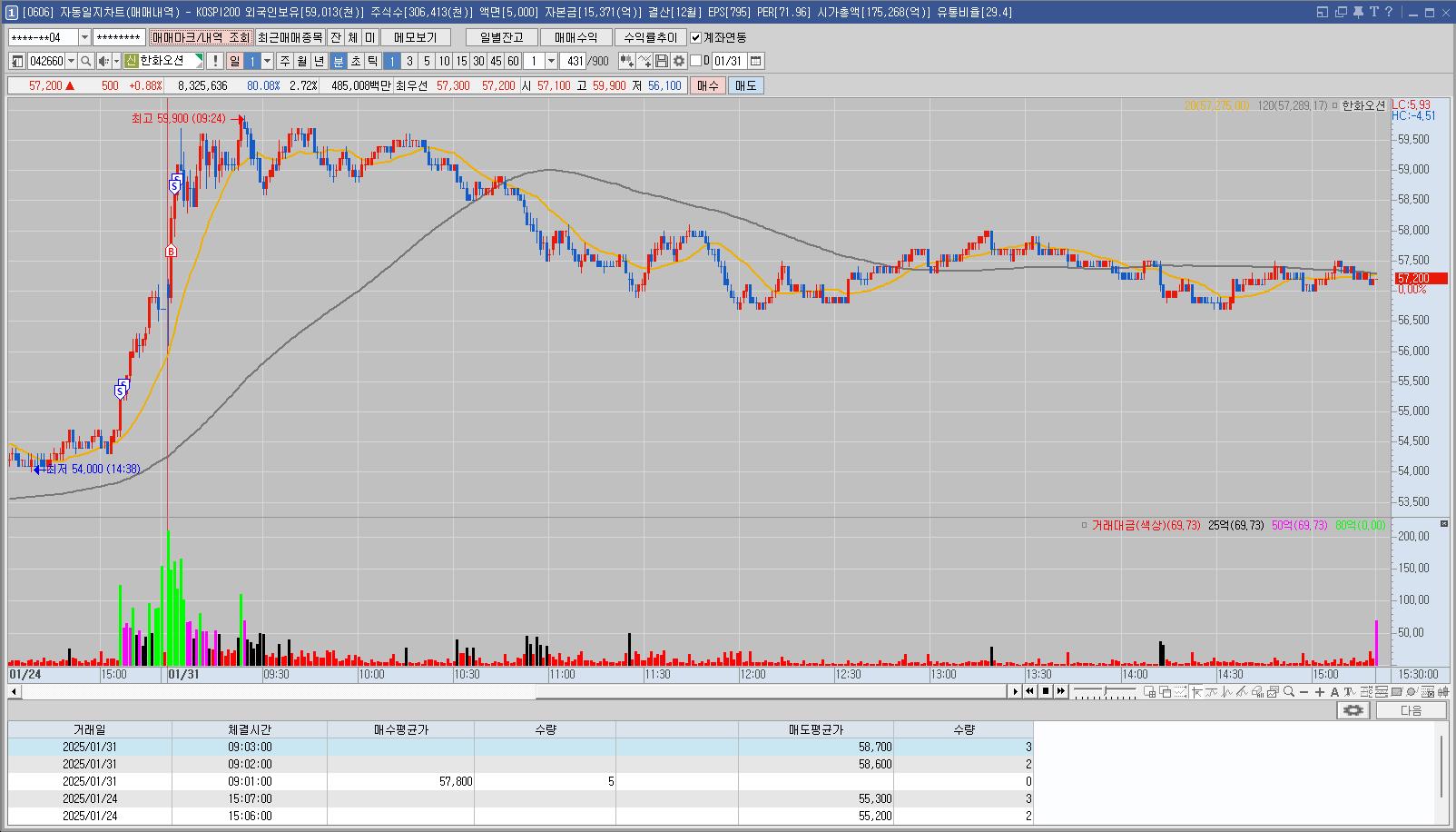 전일 종가 고가에 당일 장 초반부터 강한 모습에 매매