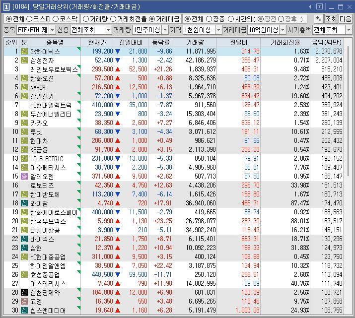 종목명 등락률 거래대금(백만) 이유