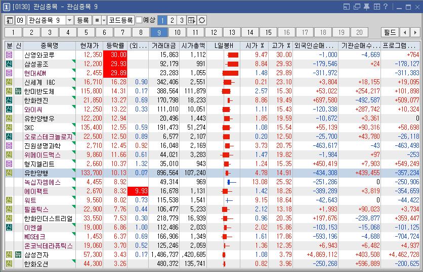 신영와코루 | 30.00 | 15,863 | 빌딩 가치만 5400억 넘는데…몸값 830억 소식 저평가 부각 강세 |