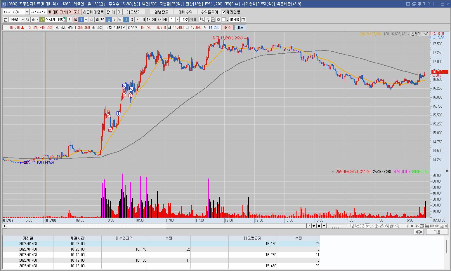 분할을 더 많이 해서 끌고 가는 매매를 해 보는 것도 괜찮지 않을까 하는 생각이 든다