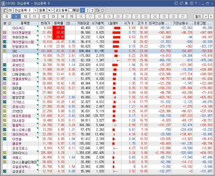 SKC | 19.35 | 690,629 | 유리기판 美 보조금ㆍSKC, 엔비디아向 공급 시사 소식 속 유리기판 테마 강세 |