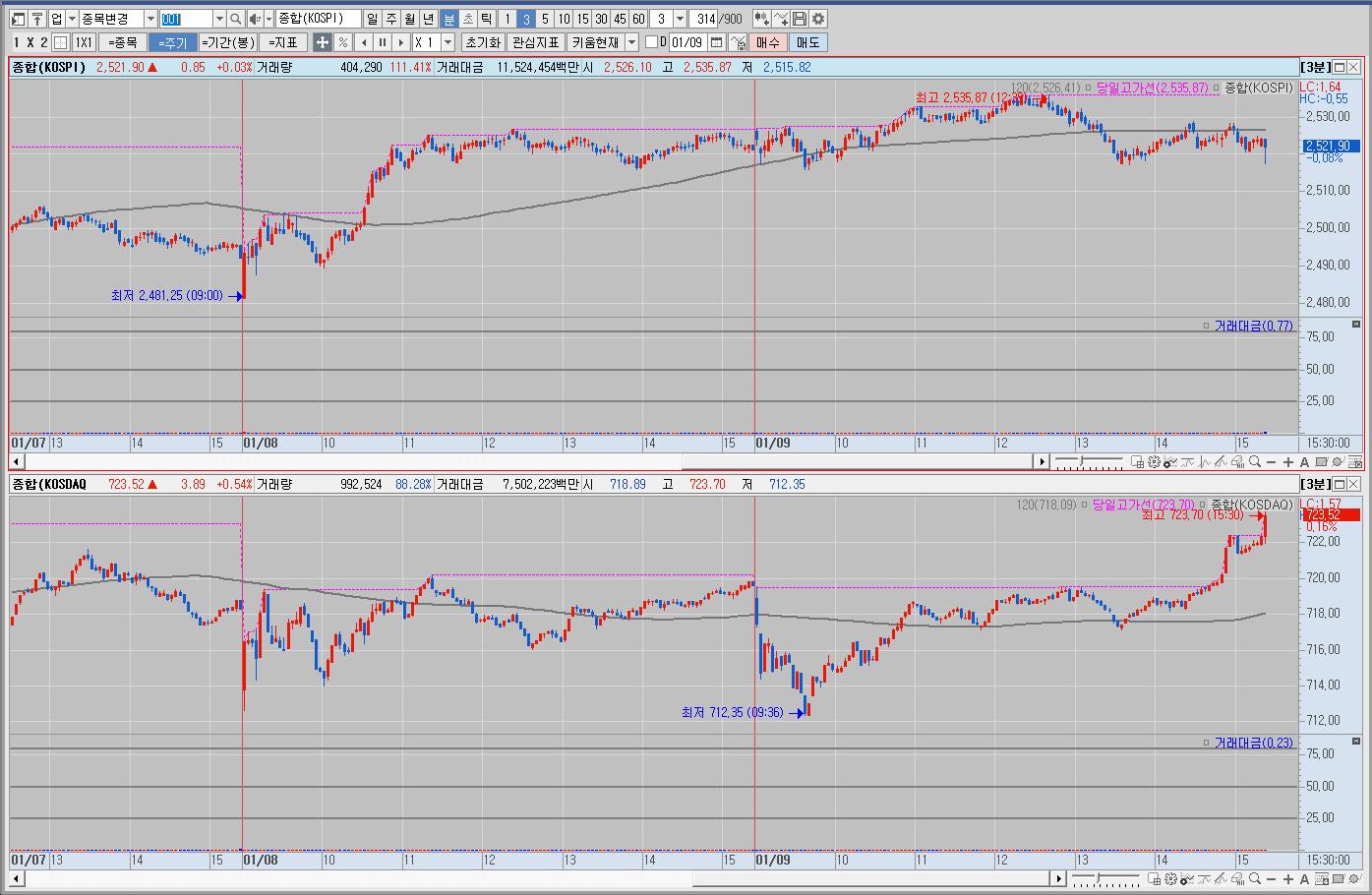 우리나라는 코스피 코스닥 혼조세를 보이며 보합권에서 등락을 하다가 후반에 코스피는 하락, 코스닥은 상승 마감